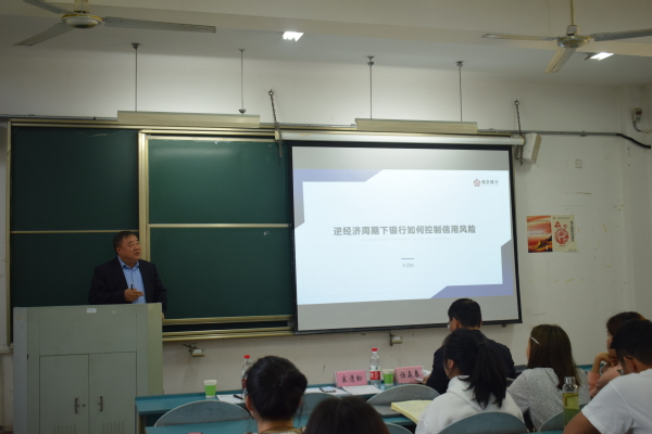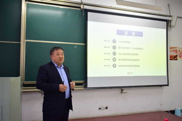 宋清松行长先从凯恩斯语录作为切入点,接着结合自身经历介绍了经济周期的演进过程,列举了经济政治等方面的大事件,着重说明了我国理论与实务界的观点。从银行风险与信用风险的产生原因,连锁影响,化解控制等几个方面系统地解析了逆经济周期下的信贷风险控制问题。报告资料内容深入浅出,参会学生认真学习并就有关问题进行了讨论。